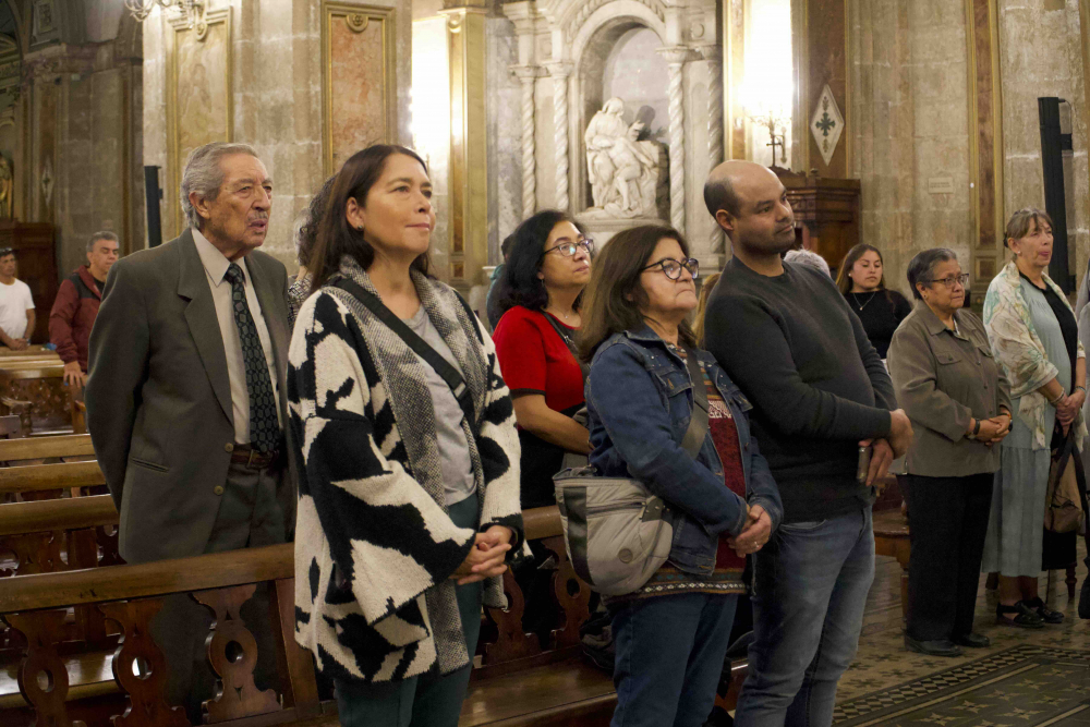 La liturgia contempló simbolismos que dieron cuenta de la presencia de Caritas en los territorios. La procesión de entrada incluyó a voluntarios, representantes diocesanos, personas mayores y miembros de equipos de escucha, visibilizando a quienes dan vida a esta red solidaria. Durante el ofertorio, se presentaron signos como la luz de la jornada nacional de Caritas, que encendió el Cirio de los DD.HH y una mochila de emergencia, representando la prevención y el cuidado de las comunidades ante crisis, reafirmando la identidad de una Iglesia que camina junto a los más vulnerables en sus realidades más urgentes.